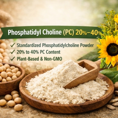 Soya Phosphatidyl Choline (PC) 20% powder is a light yellow, plant-derived ingredient extracted from soy lecithin. It offers a balanced concentration suitable for general dietary supplements and functional food applications.