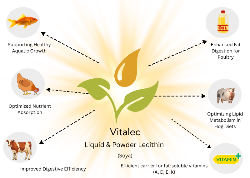 Vitalec Powder Lecithin is a premium, feed-grade phospholipid ingredient specifically developed to meet the demands of modern, high-intensity animal nutrition. Vitalec acts as a powerful bio-emulsifier that supports efficient fat emulsification and maximizes nutrient absorption within the digestive tract, ensuring livestock can fully utilize essential energy sources and fat-soluble vitamins.